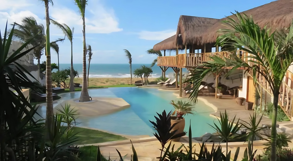 Em Praia de Jericoacoara, pousadas como a Vila Kalango e o Essenza Hotel oferecem suítes com vista para o mar, piscinas privativas e serviços especiais para casais, como jantares românticos nas dunas e massagens à beira-mar ao pôr do sol.