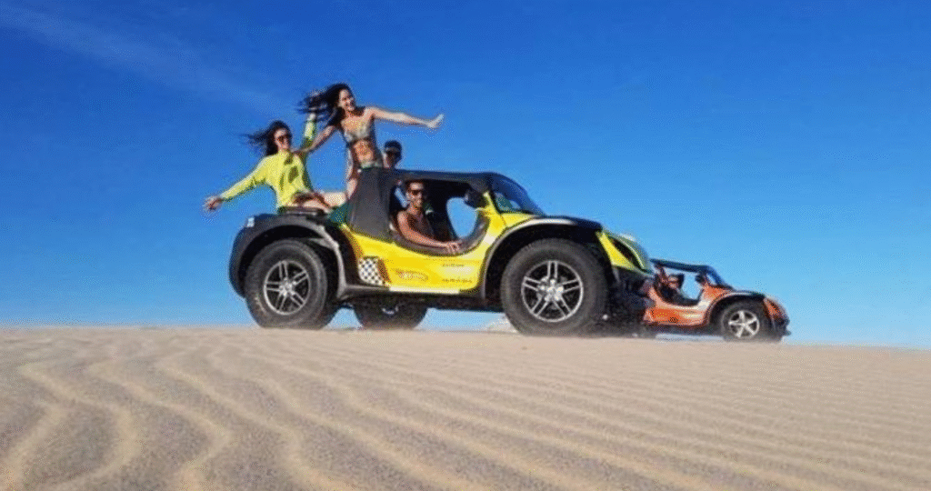 - E aí, meu amigo, é se segurar firme e gargalhar. O motor ronca, e o buggy acelera duna acima, parecendo que vai decolar rumo ao céu azul. Por um segundo, lá no topo, tudo fica em silêncio e você só vê a imensidão da areia. E então vem a descida. Aquele frio na barriga delicioso, os gritos que se misturam com risadas, o vento forte no rosto. É uma montanha-russa na natureza, onde os trilhos são desenhados pelo vento a cada dia.