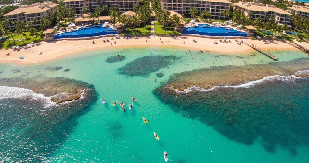 A combinação de três fatores torna Porto de Galinhas um sucesso absoluto: acessibilidade, infraestrutura e beleza natural. Localizada a apenas 60 km do Aeroporto Internacional do Recife, chegar aqui é rápido e fácil. Essa proximidade impulsionou o desenvolvimento de uma rede hoteleira completa, com resorts, hotéis e pousadas para todos os bolsos, tornando o destino uma escolha segura e confortável, especialmente para famílias com crianças.